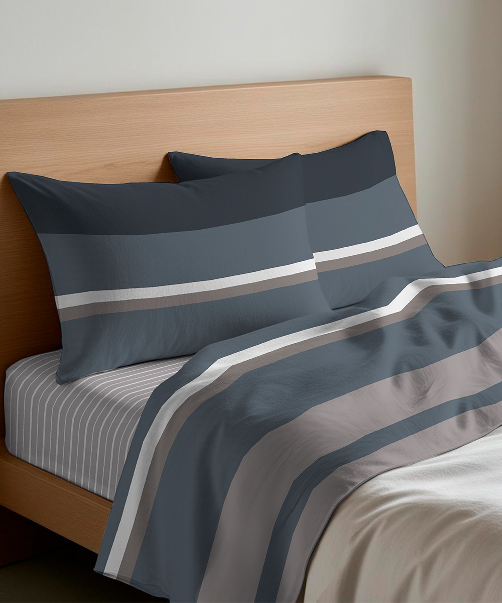 Il set comprende lenzuolo sopra, lenzuolo sotto con angoli elasticizzati per una perfetta aderenza al materasso e federa/e coordinate per cuscini, creando un letto ordinato ed elegante con estrema facilità.