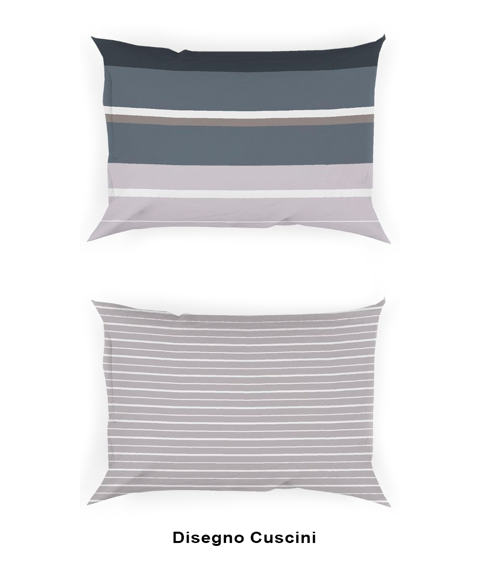 Completo lenzuola letto in 100% puro cotone Made in Italy con disegno moderno stampato, perfetto per arredare la camera da letto con uno stile contemporaneo ed elegante.