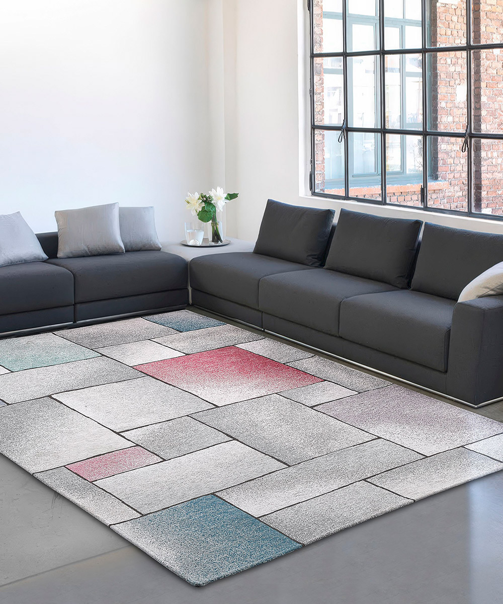 L’elemento distintivo è un audace design geometrico contemporaneo: un’intricata composizione strutturata di rettangoli astratti e linee grafiche che creano una griglia dinamica, perfetta per ambienti moderni e minimalisti. Questo stile architettonico pulito è studiato per arredare e valorizzare ogni angolo della casa: dalla zona giorno, posizionato sotto il tavolino del salotto o in soggiorno, alla praticità come tappeto da bagno o cucina, fino a zone notte come la camera da letto matrimoniale. La sua struttura lo rende ideale anche per corridoi e ingressi di transito.
